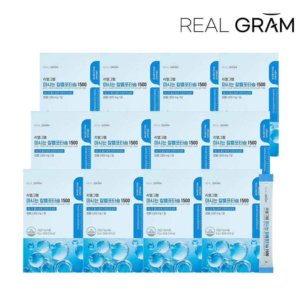 [리얼그램] 마시는 칼륨포타슘 1500 수분 전해질 밸런스 워터 분말 8g x 30포 3박스 (12개월분)