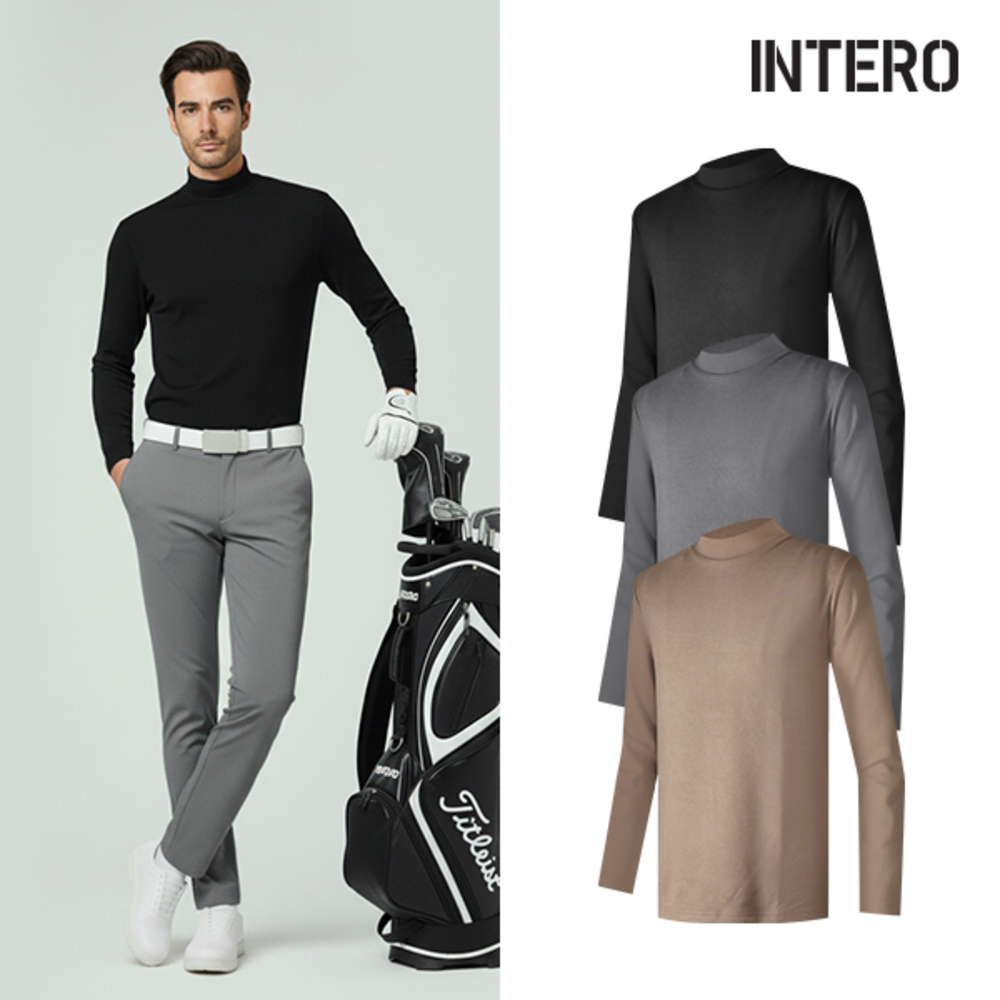 인테로 골프웨어 남성 가을/겨울 기모 터틀넥 골프티셔츠 IWMJ