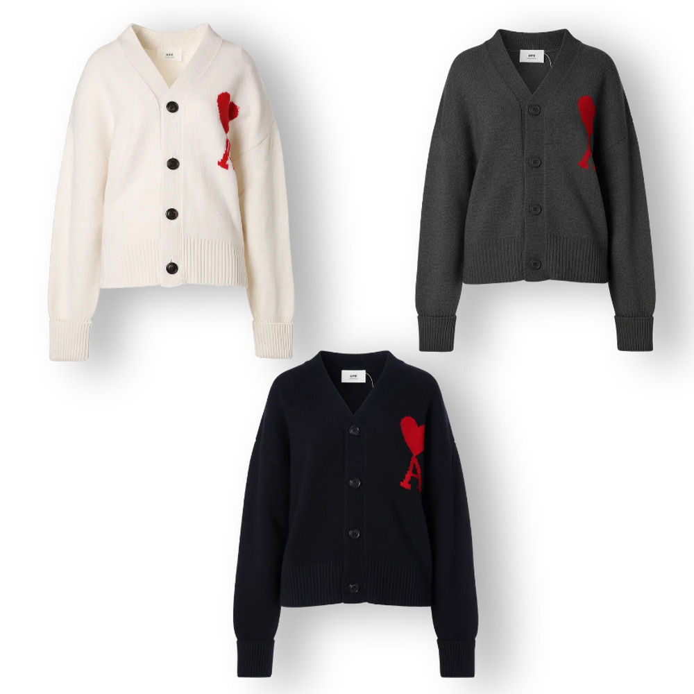 AMI 아미 남녀공용 자수 빅로고 가디건